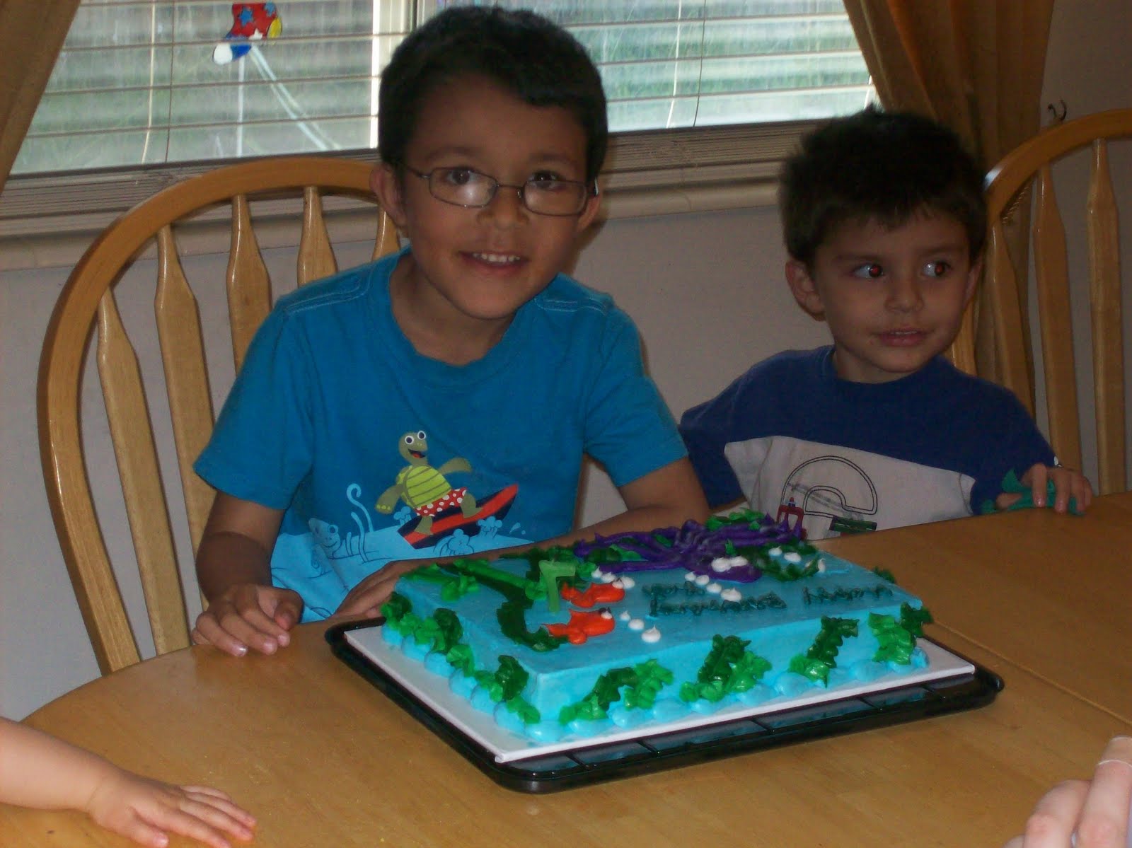 Kai wanted a Harry Potter cake, but he got an under the sea one instead because Mommy forgot to preorder a cake. :(